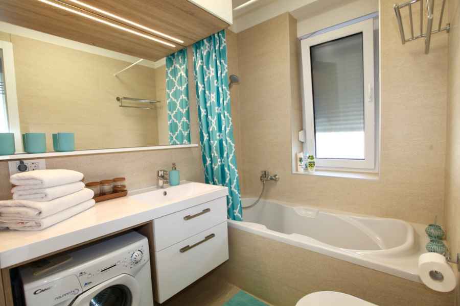 Opremljen je svime što Vam može zatrebati u pripremi hrane i pića (hladnjak, mikrovalna pečnica, ploča za kuhanje i kuhalo za vodu), osobnu higijenu (kada, sušilo za kosu, perilica za rublje ) ili sitnica poput utičnice 220/110, daske za glačanje i glačalo na paru. LCD televizor sa 250 satelitskih programa, radio sa CD-om, besplatan Wi-Fi internet, klima uređaj i centralno grijanje neophodni su sadržaji ugodnog i bezbrižnog boravka.